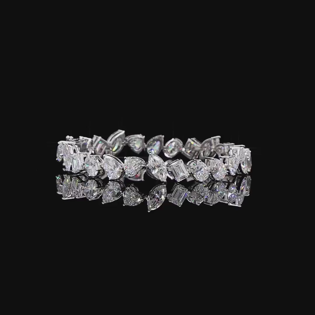 This Laboratory Tennis Bracelet features Diamond cuts such as Marquise, heart, oval, emerald, pear set in 18ct white gold to make a stunning Diamond Tennis Bracelet.